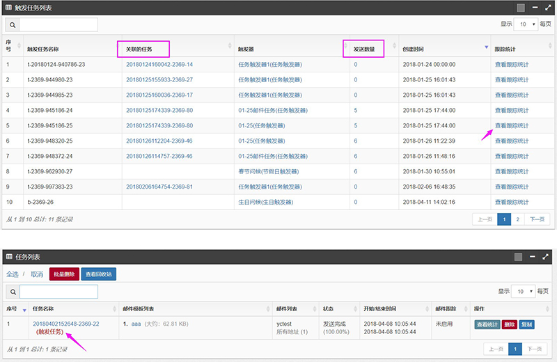 3.任务触发后有客户打开邮件时,会形成相应的任务发送统计报告;