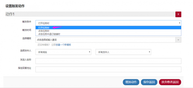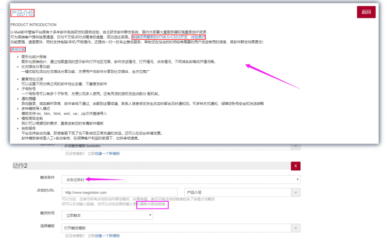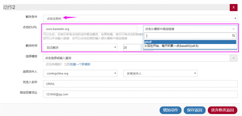 2、点击模板中的链接,可设置点击不同的链接,触发不同的邮件模板发送