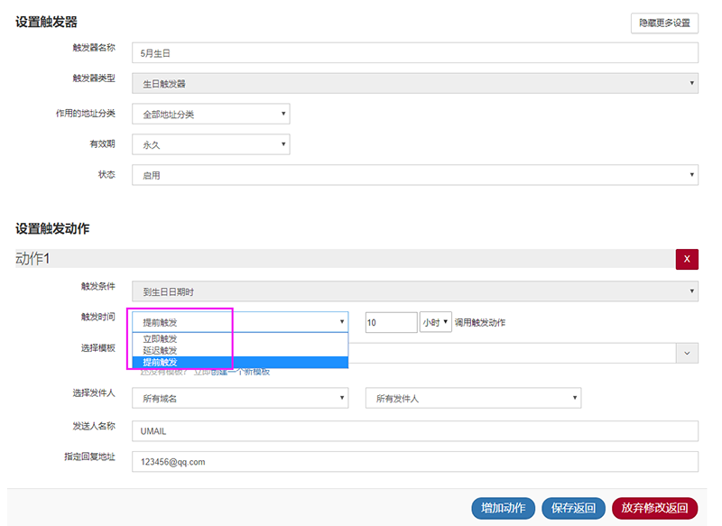 设置节假日、生日等时间自动触发邮件。
