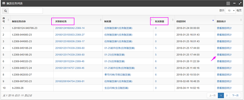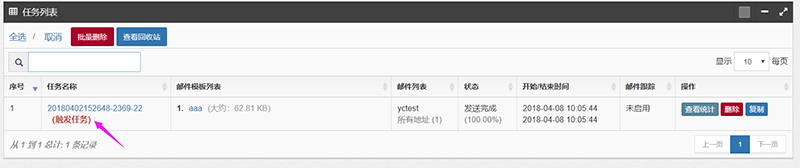 3、任务触发后并有用户打开邮件后,会形成相应的任务发送统计报告
