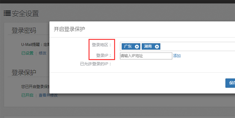 安全问题始终是每个营销人员都高度紧张的头等大事,曾经有一家企业营销人员向U-Mail客服反馈了一个案例:该公司一位负责营销业务的管理人员在离职之后,仍偷偷利用公司的营销平台私发自己的业务,造成了公司巨大的损失。但是这种极端如果使用U-Mail邮件营销平台就不会发生,因为U-Mail会授予用户一个权限,即它可以限制用户在指定地区和指定IP登录,如限定使用者必须在公司IP段才能登录,或者因为在家办公的需要,也可以开放给多个IP。