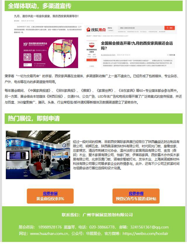 3. 为满足其进一步了解的欲望和参展需求,在相应的版块加入“抢订展位“和”预约参展”的超链接,方便客户报名参展和预定展位;