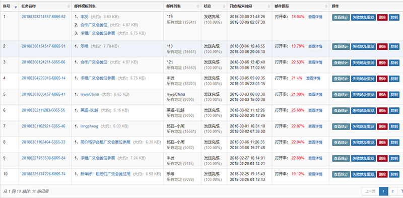 而群发后的效果统计又非常清晰、准确。