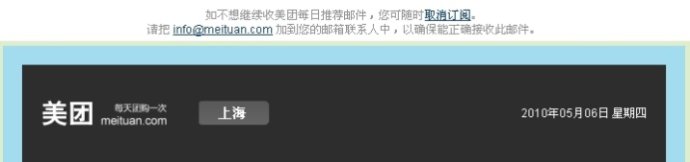 退订放在头部显著位置,很多人认为是危险的,这是很显而易见的一个问题。好处是可以以免一些用户的过激行为,由于找不到底部退订按钮,而马上投诉为垃圾邮件发送者。