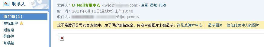 需要点击显示才可以显示。 比如说腾讯,qq服务器经过近的调整,只要不是腾讯官方的邮件,图片全部默认不显示。如下图。