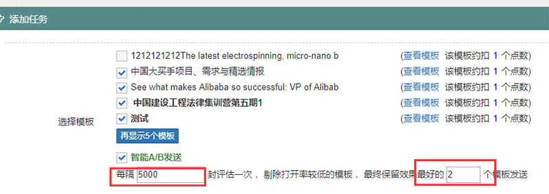 2、营销人员可以设置每发送多少封之后做一次效果评估,然后终保留多少个邮件模板进行发送,这些设置都是很灵活的。