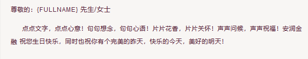 这封邮件只是简简单单几句话,没有华丽的装饰,却让我们感受到企业对客户真挚的祝福,并且在邮件的抬头加入收件人的姓名,更体现出企业对客户的尊重。