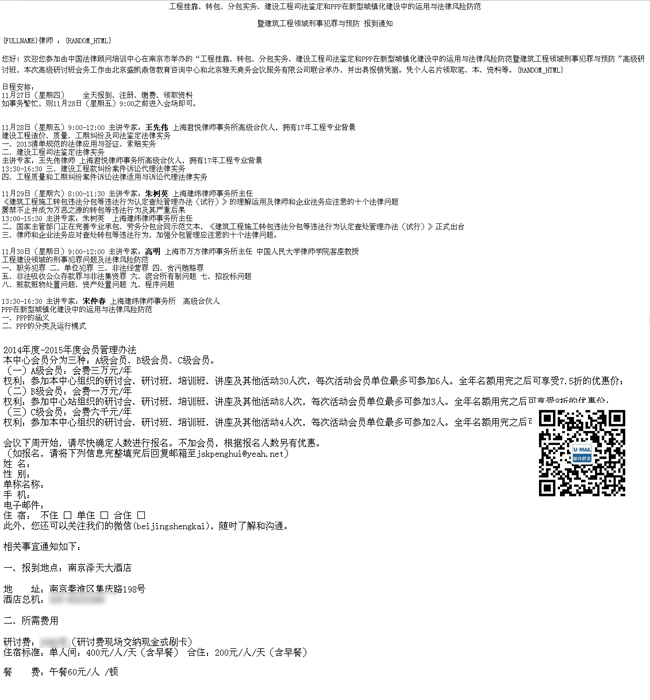 1.邮件能传输较多的信息量,适宜公司将教育课程的详细事宜包括时间、地点、费用、主讲人及课程简介告知会员;