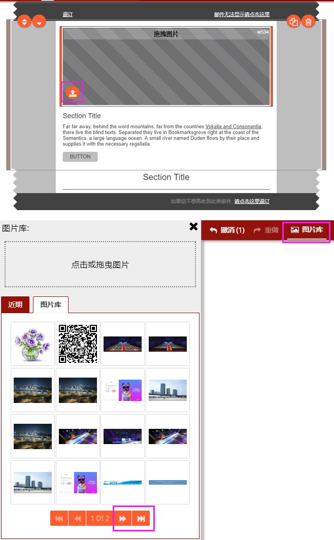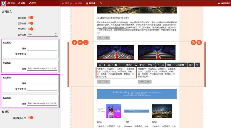 二、营销人员对图片的任何操作都能直观的展示出来,他可以拖曳、复制粘贴、删除图片和调整大小,而营销人员看到的效果也就是呈现在读者收件端上的结果。