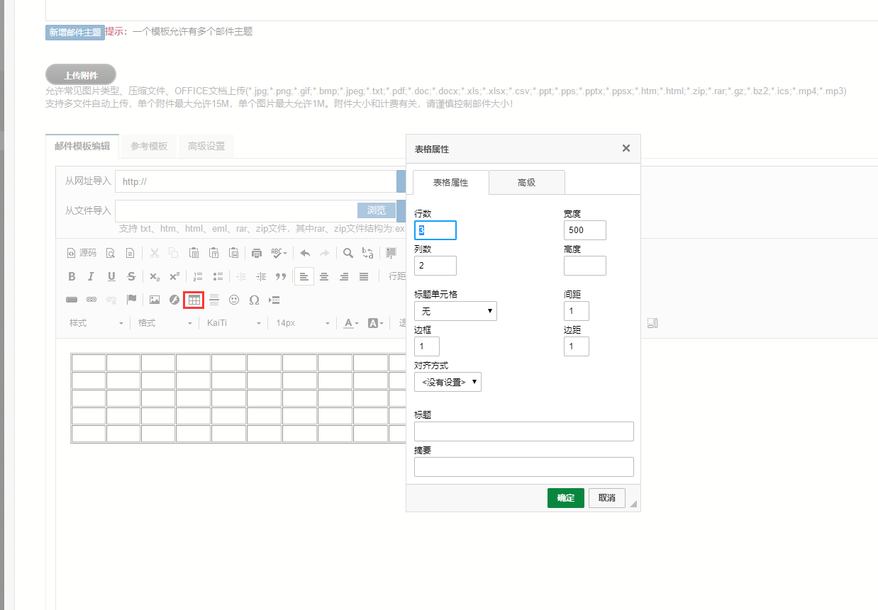 U-Mail邮件营销平台后台同样支持表格的使用,它在平台中的操作就感觉像在word里面一样方便和功能强大,我们可以自如插入表格,设置表格(单元格)的高度和宽度,对表格行列进行删除、增加和修改等操作。