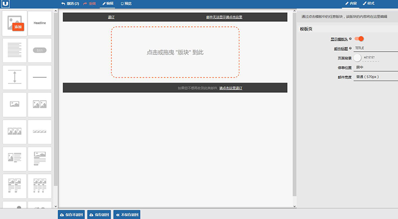 现在人们更习惯于使用移动端来收发邮件,但有些企业在设计邮件内容时没有考虑到移动端的浏览效果,导致邮件在移动端打开要么文字显得过于拥挤要么图片模糊不清。为了防止这种情况发生,好不要使用缩略图,使用高清大图,不要给图片设置固定宽度要允许图像自适应显示屏宽度。U-Mail邮件营销平台提供可视化模板编辑器供用户使用,无需复杂的设计,只需简单拖拽控件并替换文字和图片,就可做成精美邮件模板,并且邮件模板自动适应PC、手机、平板等移动端设备。