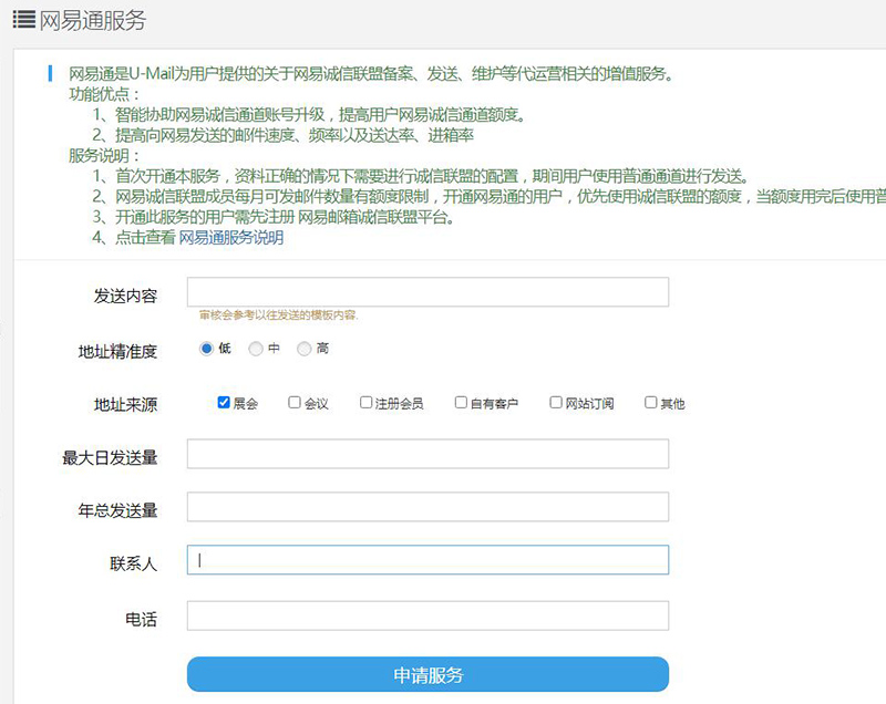 目前,U-Mail邮件营销平台只针对部分优质客户开放白名单服务,并且白名单服务的申请也有一些限制: